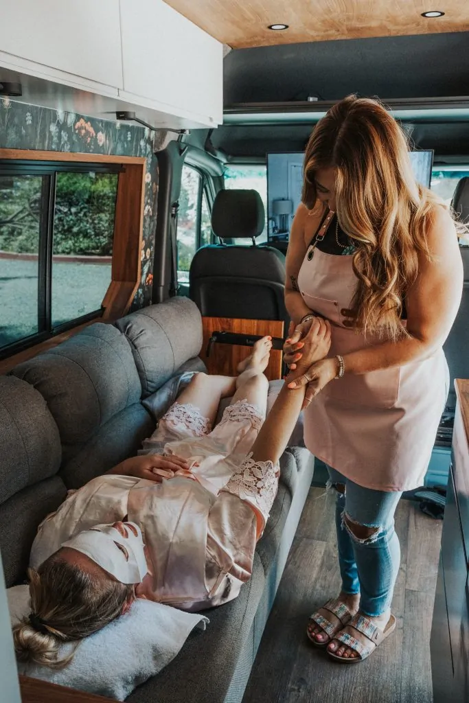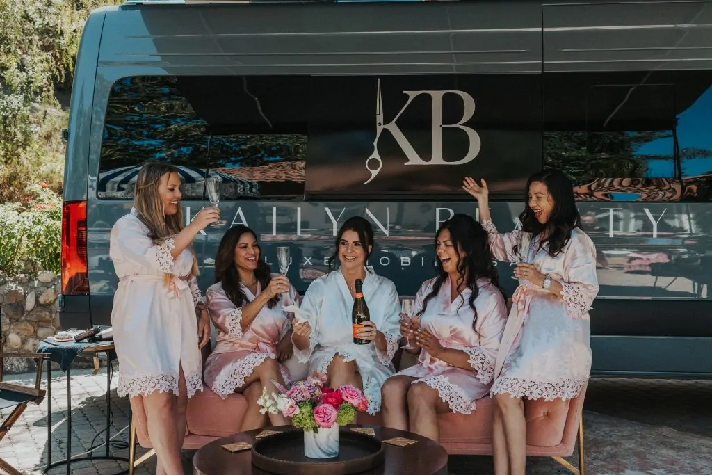 Kailyn Beauty service for weddings in Southern California with Luxury salon van, outdoor lounge, cocktails, and optional glam team included. Everything you need to get ready, relax, and celebrate in style.